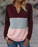 SPECIFICATIES Toptype: Topjes Stijl: Gewoontjes Materiaal: 100% Polyester Gelegenheid: Dagelijks, Vakantie Hals lijn: V-hals_V Patroon type: Kleurblok Mouw type: Normale mouw Mouw lengte: Lange mouw Pasvorm: Normaal Seizoen: Lente, Val Pakket bestaat uit: 1 x Top MAATTABEL (cm) Maat Borst Lengte S 95 65 M 100 66.5 L 105 68 XL 111...