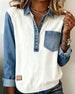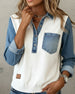 SPECIFICATIES Toptype: Sweatshirts Stijl: Gewoontjes Materiaal: katoenblends,Denim Gelegenheid: Dagelijks Hals lijn: Revers Patroon type: Kleurblok Mouw type: Raglan mouw Mouw lengte: Lange mouw Pasvorm: Normaal Seizoen: Val,Winter Details: Lapwerk,Toetsen Pakket bestaat uit: 1 x Sweatshirt MAATTABEL (cm) Maat Borst Lengte S 97 65 M 101 ...
