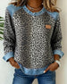 Trui Luipaardprint Denim Patchwork