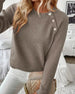Trui Met Knop Detail, Kraag Ontwerp En Modieuze Stijl