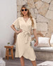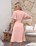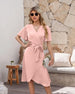 SPECIFICATIES Stijl: Gewoontjes, Basis, Bedrijf Materiaal: Polyester Type jurk: Tuniek Jurk lengte: knie lengte Hals lijn: V-hals_V Patroon type: Effen kleur Mouw type: Flare mouw Mouw lengte: Korte mouw Pasvorm: Normaal Seizoen: Lente, Zomer Gelegenheid: Dagelijks Pakket bestaat uit: 1 x jurk (met riem) MAATTABEL (cm) Maat Borst Mouwen L...
