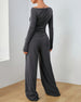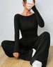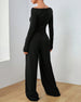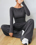 Tweedelige set - effen kleur top en broek met wijde pijpen