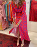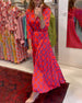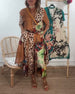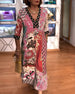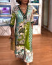 V-hals Jurk Met Vintage Print En Spleetontwerp