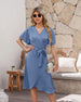 SPECIFICATIES Stijl: Gewoontjes Materiaal: 3% Katoen, 97% Polyester Type jurk: Verschuivings jurk Jurk lengte: Midi Hals lijn: V-hals_V Patroon type: Effen kleur Mouw type: Normale mouw Mouw lengte: Halve mouw Pasvorm: Loszittend Seizoen: Lente, Zomer, Val Gelegenheid: Dagelijks Pakket bestaat uit: 1 x Jurk MAATTABEL (cm) Maat ...