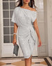 SPECIFICATIES Stijl: Partij Materiaal: katoenblends Type jurk: Wrap Jurk lengte: knie lengte Hals lijn: Een schouder Patroon type: Effen kleur Mouw type: Normale mouw Mouw lengte: Korte mouw Details: Veterschoenen Pasvorm: Normaal Seizoen: Lente,Zomer,Val Gelegenheid: Partij Pakket bestaat uit: 1 x Jurk MAATTABEL (cm) Maat Borst Lengte Mo...