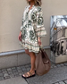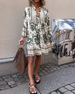 Losvallende patchworkjurk met V-hals en klokmouwen met print