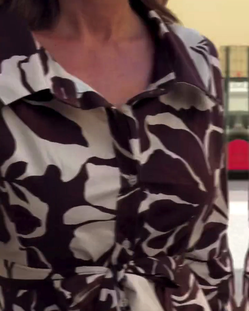 Losvallende patchworkjurk met V-hals en klokmouwen met print