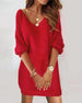 SPECIFICATIES Stijl: Gewoontjes Materiaal: Acryl, Polyester Type jurk: Trui Jurk lengte: Boven de knie Hals lijn: V-hals_V Patroon type: Effen kleur Mouw type: verlaagde schouder Mouw lengte: Negen punten mouw Pasvorm: Normaal Seizoen: Lente, Val Gelegenheid: Dagelijks, Vakantie Pakket bestaat uit: 1 x Jurk MAATTABEL (cm) Maat Buste Lengt...