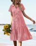 SPECIFICATIES Stijl: Gewoontjes Materiaal: Katoen en linnen Type jurk: Verschuivings jurk Jurk lengte: knie lengte Hals lijn: V-hals_V Patroon type: Effen kleur Mouw type: Normale mouw Mouw lengte: Korte mouw Pasvorm: Normaal Seizoen: Lente, Zomer, Val Gelegenheid: Dagelijks Pakket bestaat uit: 1 x Jurk MAATTABEL (cm) Maat Borst Le...