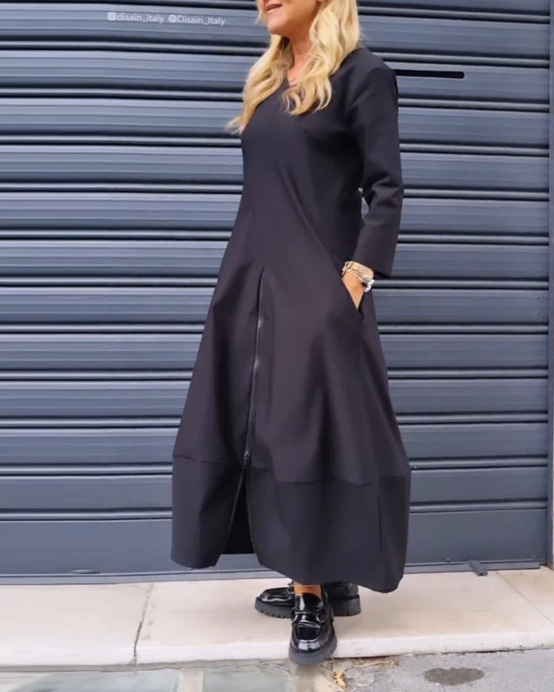 SPECIFICATIES Stijl: Gewoontjes Materiaal: 100% Polyester Type jurk: A-lijn Jurk lengte: Maxi Hals lijn: V-hals_V Patroon type: Effen kleur Mouw type: Normale mouw Mouw lengte: Lange mouw Details: Zak, Rits Pasvorm: Normaal Seizoen: Lente, Val, Winter Gelegenheid: Dagelijks Pakket bestaat uit: 1 x Jurk MAATTABEL (cm) Maat Borst...