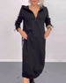 SPECIFICATIES Stijl: Gewoontjes Materiaal: 100% Polyester Type jurk: A-lijn Jurk lengte: knie lengte Hals lijn: Revers Patroon type: Effen kleur Mouw type: Normale mouw Mouw lengte: Lange mouw Details: gerimpeld Pasvorm: Normaal Seizoen: Val, Winter Gelegenheid: Dagelijks, Vakantie Pakket bestaat uit: 1 x Jurk MAATTABEL (cm) Ma...