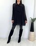 Effen Blouse Met Lantaarnmouwen En Patchworkdetails