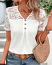 Blouse V-Hals Effen Kleur Kant Stiksel