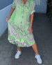SPECIFICATIES Stijl: Gewoontjes Materiaal: katoenblends Type jurk: A-lijn Jurk lengte: Midi Hals lijn: V-hals_V Patroon type: Afdrukken Mouw type: Normale mouw Mouw lengte: 3/4 mouw Pasvorm: Normaal Seizoen: Lente, Zomer Gelegenheid: Dagelijks Pakket bestaat uit: 1 x Jurk MAATTABEL (cm) Maat Borst Lengte S 95 120 M 100 121.5 L 105 123 ...