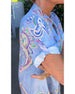 Lange jurk met opstaande kraag en lange mouwen met patchworkprint