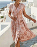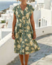 Jurk V-Hals Print Getailleerde Taille Knoopsluiting Voorzijde