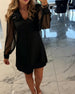 Jurk Driedimensionale Bloem V-hals Lantaarn Mouw