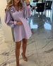 SPECIFICATIES Stijl: Gewoontjes Materiaal: katoenblends Type jurk: Verschuivings jurk Jurk lengte: knie lengte Hals lijn: V-hals_V Patroon type: Effen kleur Mouw type: Lantaarn mouw Mouw lengte: Lange mouw Pasvorm: Normaal Seizoen: Lente,Zomer Gelegenheid: Dagelijks Pakket bestaat uit: 1 x Jurk MAATTABEL (cm) Maat Borst Lengte S 97 100 M...