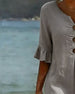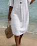 SPECIFICATIES Stijl: Gewoontjes Materiaal: katoenblends Type jurk: Verschuivings jurk Jurk lengte: Midi Hals lijn: V-hals_V Mouw type: Lantaarn mouw Mouw lengte: 3/4 mouw Details: Uithollen Pasvorm: Normaal Seizoen: Lente,Zomer Gelegenheid: Dagelijks Pakket bestaat uit: 1 x Jurk MAATTABEL (cm) Maat Borst Lengte S 97 120 M 101 121.5 L 1...
