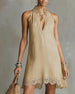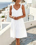 SPECIFICATIES Stijl: Vakantie, Boho, Elegant Materiaal: Katoen Type jurk: Cami Jurk lengte: knie lengte Hals lijn: V-hals_V Patroon type: Effen kleur Mouw lengte: Mouwloos Details: Geborduurd, Veter Pasvorm: Normaal Seizoen: Zomer Gelegenheid: Vakantie Pakket bestaat uit: 1 x Jurk MAATTABEL (cm) Maat Borst Middel Lengte S 95 82 ...