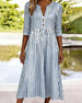 Jurk Blauw Wit Gestreept Driekwart Mouw