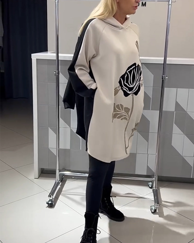 Casual jurk met lange mouwen en luipaardprint patchwork