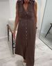 Jurk Mouwloos Met Knopen Getailleerd Overhemd