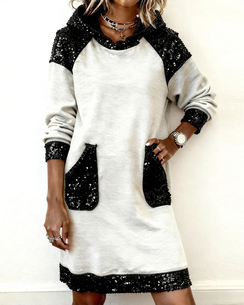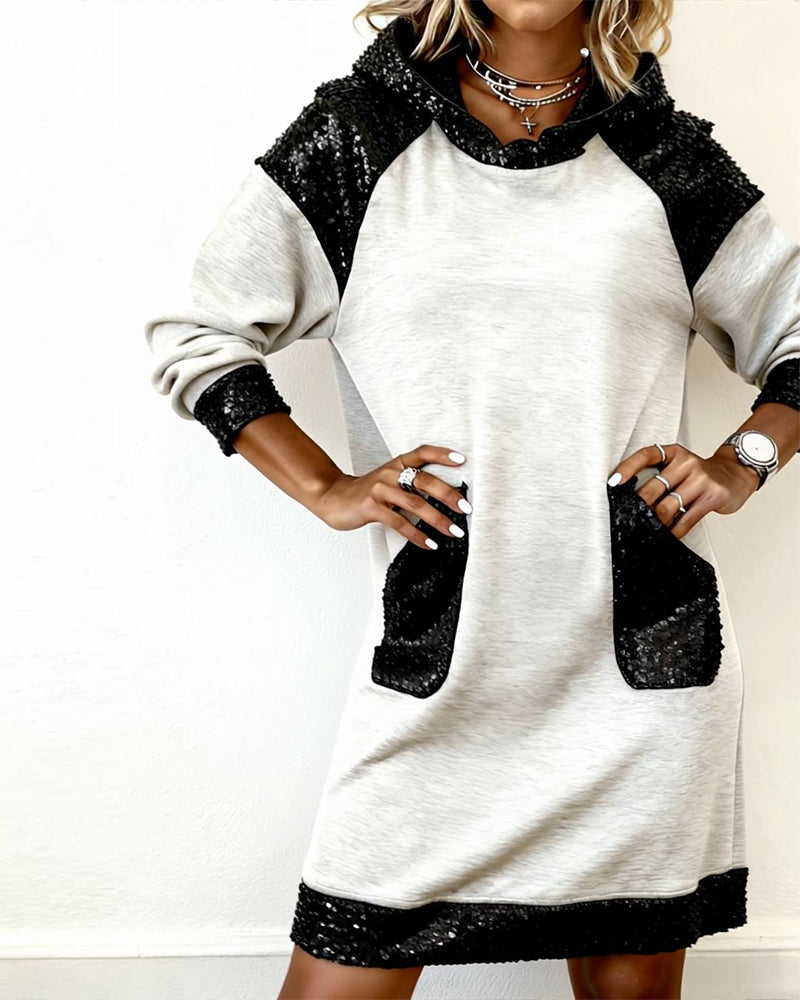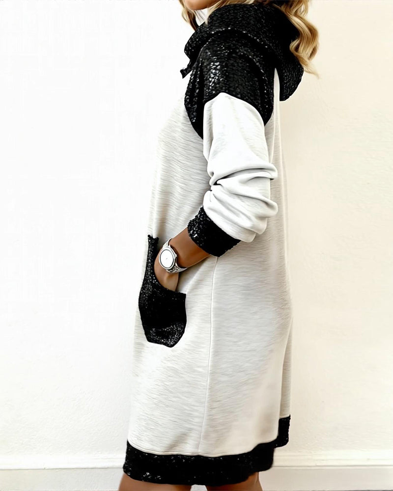Jurk Met Capuchon En Contrasterende Panelen