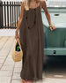 Jurk Effen Kleur Gerimpeld Rugvrij Spaghettiband Maxi