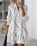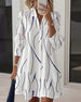 SPECIFICATIES Stijl: Gewoontjes Materiaal: katoenblends Type jurk: A-lijn Jurk lengte: Boven de knie Hals lijn: Revers Patroon type: Gestreept,Rimpeling Mouw type: Normale mouw Mouw lengte: Lange mouw Details: Toetsen Pasvorm: Normaal Seizoen: Lente,Val Gelegenheid: Dagelijks Pakket bestaat uit: 1 x Jurk MAATTABEL (cm) Maat Borst Lengte...