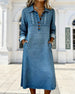 SPECIFICATIES Stijl: Gewoontjes Materiaal: katoenblends Type jurk: Verschuivings jurk Jurk lengte: Midi Hals lijn: Revers Patroon type: Effen kleur Mouw type: Normale mouw Mouw lengte: Lange mouw Details: Zak,Toetsen Pasvorm: Normaal Seizoen: Val,Winter Gelegenheid: Dagelijks Pakket bestaat uit: 1 x Jurk MAATTABEL (cm) Maat Borst Lengte S ...