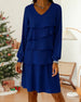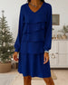 SPECIFICATIES Stijl: Gewoontjes Materiaal: katoenblends Type jurk: A-lijn Jurk lengte: Boven de knie Hals lijn: Ronde nek Mouw type: Flare mouw Mouw lengte: Lange mouw Details: Lapwerk,Veter Pasvorm: Normaal Seizoen: Val,Winter Gelegenheid: Dagelijks Pakket bestaat uit: 1 x Jurk MAATTABEL (cm) Maat Borst Lengte S 97 95 M 101 96 L 1...