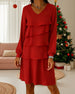 Geknoopte Jurk Met V-Hals En Lange Mouwen