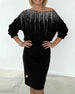 SPECIFICATIES Stijl: Gewoontjes Materiaal: katoenblends,pailletten Type jurk: Verschuivings jurk Jurk lengte: Boven de knie Patroon type: pailletten,Effen kleur Mouw type: Normale mouw Mouw lengte: 3/4 mouw Details: Lapwerk,Doorzichtig Pasvorm: Normaal Seizoen: Val,Winter Gelegenheid: Dagelijks Pakket bestaat uit: 1 x Jurk MAATTABEL (cm) ...