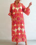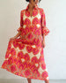 SPECIFICATIES Stijl: Boho Materiaal: katoenblends Type jurk: Verschuivings jurk Jurk lengte: Maxi Hals lijn: V-hals_V Patroon type: Afdrukken Mouw type: Flare mouw Mouw lengte: 3/4 mouw Pasvorm: Normaal Seizoen: Lente,Zomer Gelegenheid: Dagelijks Pakket bestaat uit: 1 x Jurk MAATTABEL (cm) Maat Borst Lengte S 97 137 M 101 138.5 L 105 1...