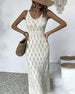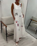 Jurk Diepe V-Hals Geborduurd Casual Lang