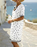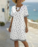 SPECIFICATIES Stijl: Gewoontjes Type jurk: Verschuivings jurk Jurk lengte: knie lengte Hals lijn: Ronde nek Patroon type: Gestreept,Stip Mouw type: Normale mouw Mouw lengte: Korte mouw Pasvorm: Normaal Seizoen: Lente,Zomer Gelegenheid: Dagelijks Pakket bestaat uit: 1 x Jurk MAATTABEL (cm) Maat Borst Lengte S 97 100 M 101 101.5 L 105...