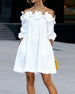 SPECIFICATIES Stijl: Elegant Materiaal: katoenblends Type jurk: A-lijn Jurk lengte: Boven de knie Hals lijn: Off-shoulder Patroon type: Effen kleur Mouw type: Lantaarn mouw Mouw lengte: Lange mouw Pasvorm: Normaal Seizoen: Lente,Zomer Gelegenheid: Dagelijks Pakket bestaat uit: 1 x Jurk MAATTABEL (cm) Maat Borst Lengte S 97 95 M 101 9...
