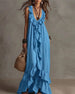 Jurk Diepe V-Hals Vakantie Uitlopend Geruwd Maxi