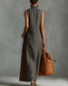 Jurk Hoge Hals Asymmetrisch Patchwork Mouwloos