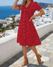 SPECIFICATIES Stijl: Gewoontjes Materiaal: katoenblends Type jurk: A-lijn Jurk lengte: knie lengte Hals lijn: V-hals_V Patroon type: Afdrukken Mouw type: Lantaarn mouw Mouw lengte: Korte mouw Details: Zak,Toetsen Pasvorm: Normaal Seizoen: Lente,Zomer Gelegenheid: Dagelijks Pakket bestaat uit: 1 x Jurk MAATTABEL (cm) Maat Borst Lengte S ...