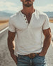 T-Shirt Halfgeknoopt Henley Korte Mouw
