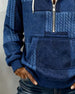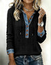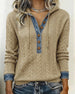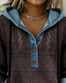 Hoodie Van Denim Met Kabelssteek En Patchworkdetails