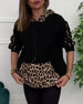 Casual luipaardprint hoodie met vetersluiting en zakje