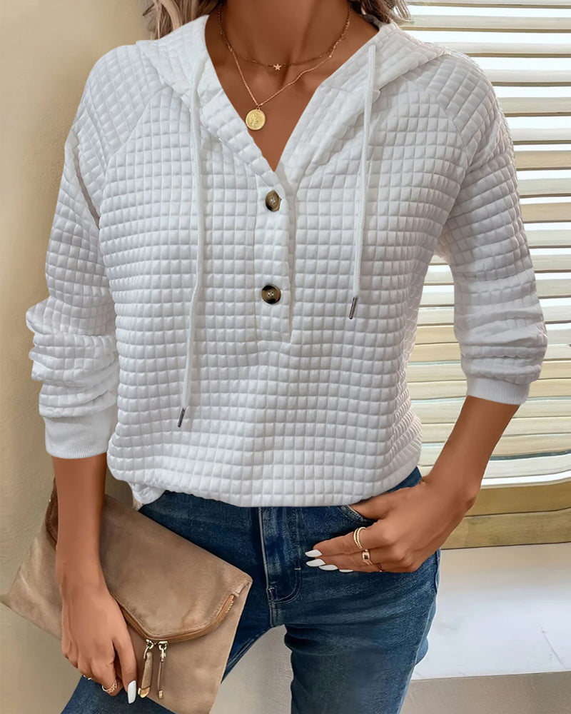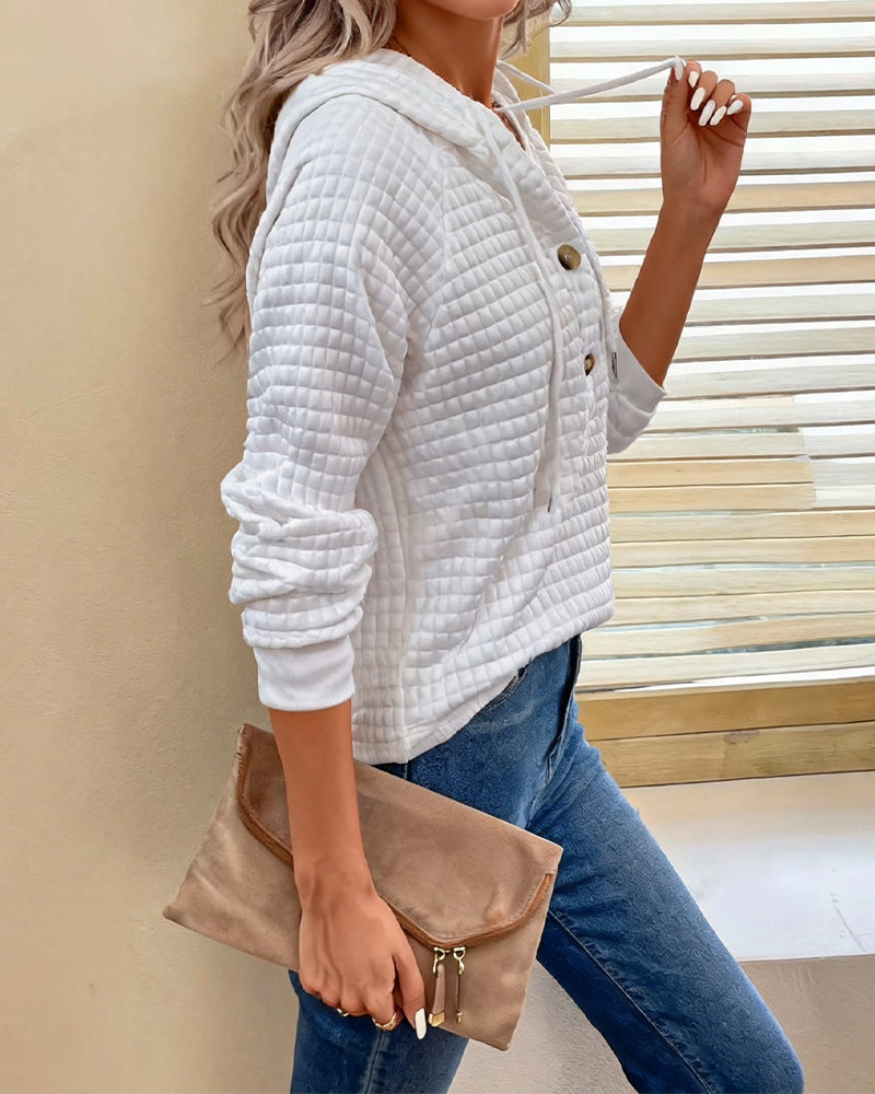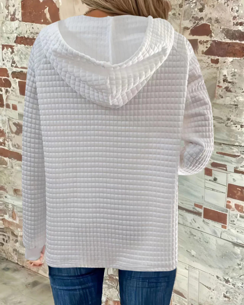 Langmouwige Hoodie Van Wafflestof In Effen Kleur