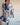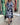 Elegante tie-dye patchwork jurk met trekkoord en ballonmouwen