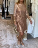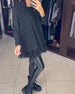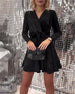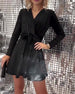 Modieuze effenkleurige pailletten patchwork jurk met lange mouwen