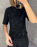 Slimming Pailletten T-Shirt Met Korte Mouwen