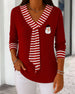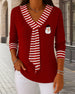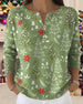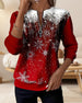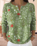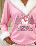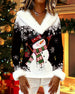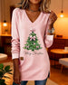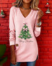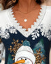 Dames gebreide top met kerstprint, V-hals, 3/4 mouwen, casual stijl en losse passform