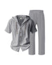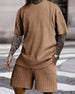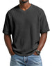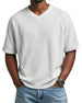 Heren V-Hals T-Shirt Met Wafelstructuur, Casual Short-Sleeve Top In Effen Kleur